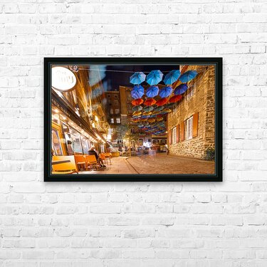 Get this artwork "Umbrella Alley Rue Du Cul-Du Sac Old Quebec Canada" in a framed print.