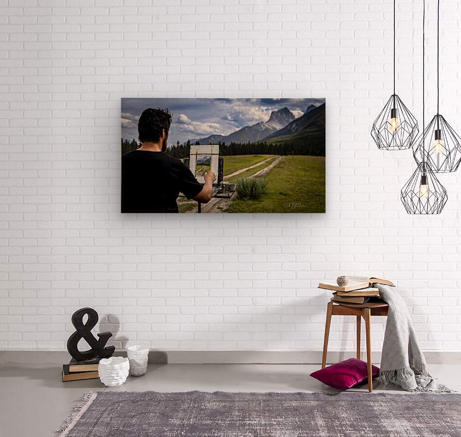Unknown Artist Painting The Three Sisters In Canmore Alberta Canada  Wood print