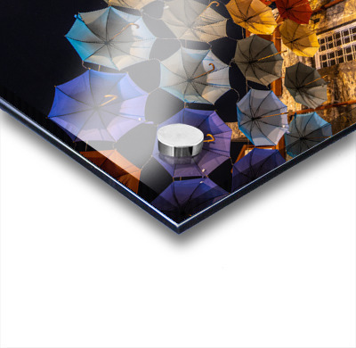 Impression sur acrylique avec entretoises ( cylindres métalliques )