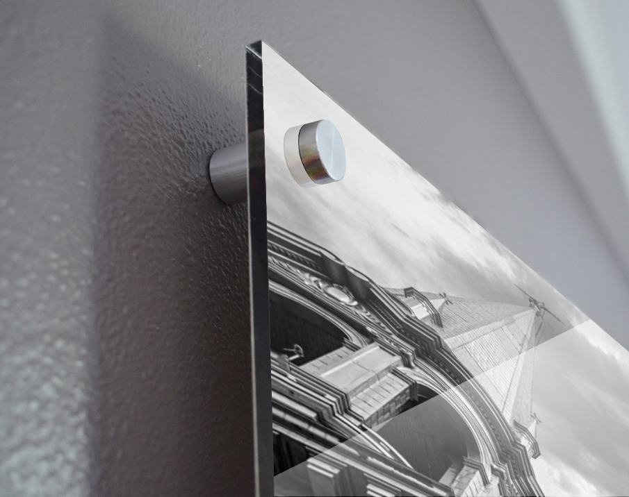 Printed to the edge - Ready to hang - provided with 4 premium polished aluminum stand off ( wall screws and mounting hardware provided )