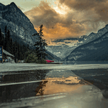 Get this artwork "Sunrise On The Boardwalk At The Fairmont In Lake Louise Alberta Canada" in a framed print.