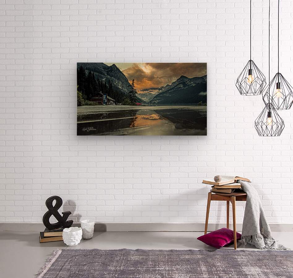 Sunrise On The Boardwalk At The Fairmont In Lake Louise Alberta Canada  Wood print