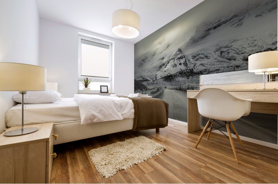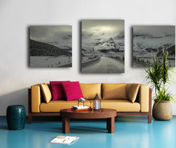 ABOUT THIS ARTWORK: MORNING DRIVE THROUGH FRESH SNOW IN THE COLUMBIA ICEFIELDS ALBERTA CANADA