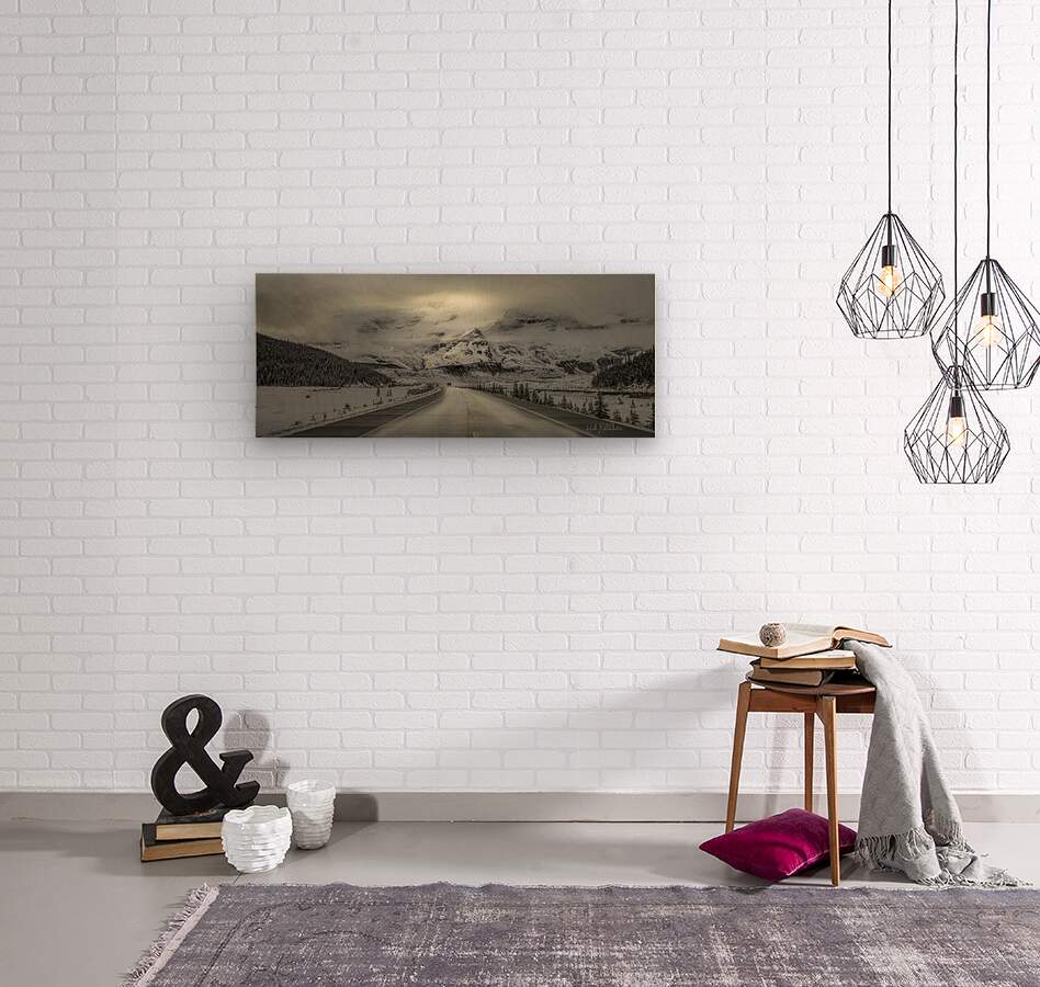 Morning Drive Through Fresh Snow In The Columbia Icefields Alberta Canada  Wood print