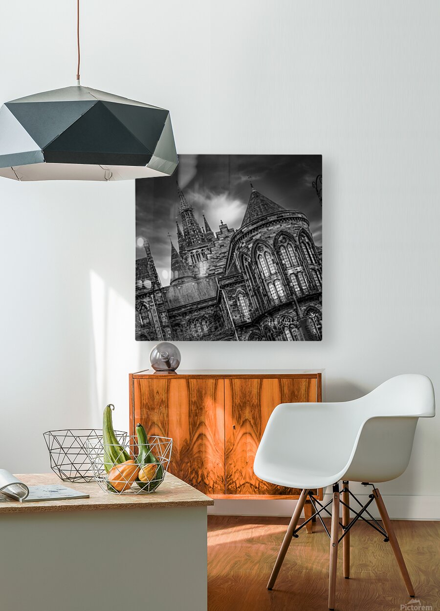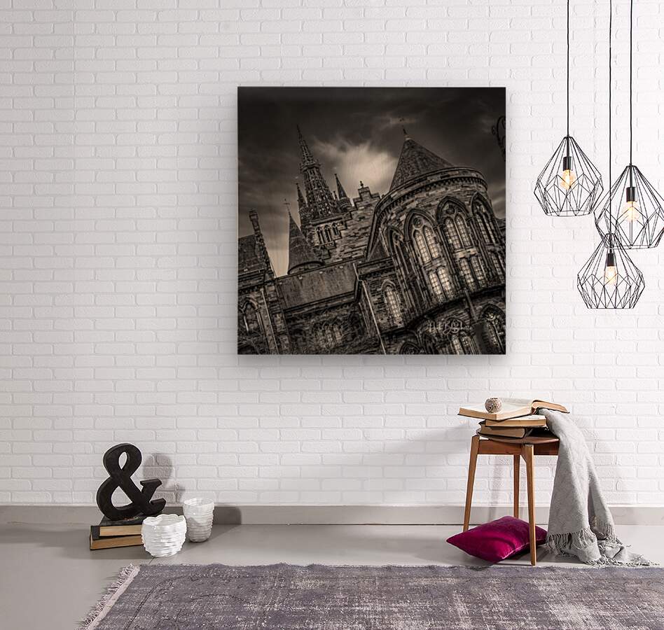 Gothic Revival architecture of the University of Glasgow’s Gilmorehill campus Scotland UK  Wood print