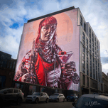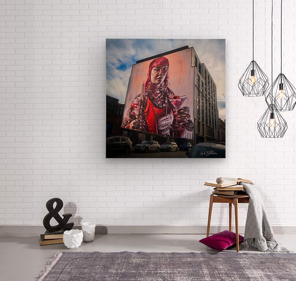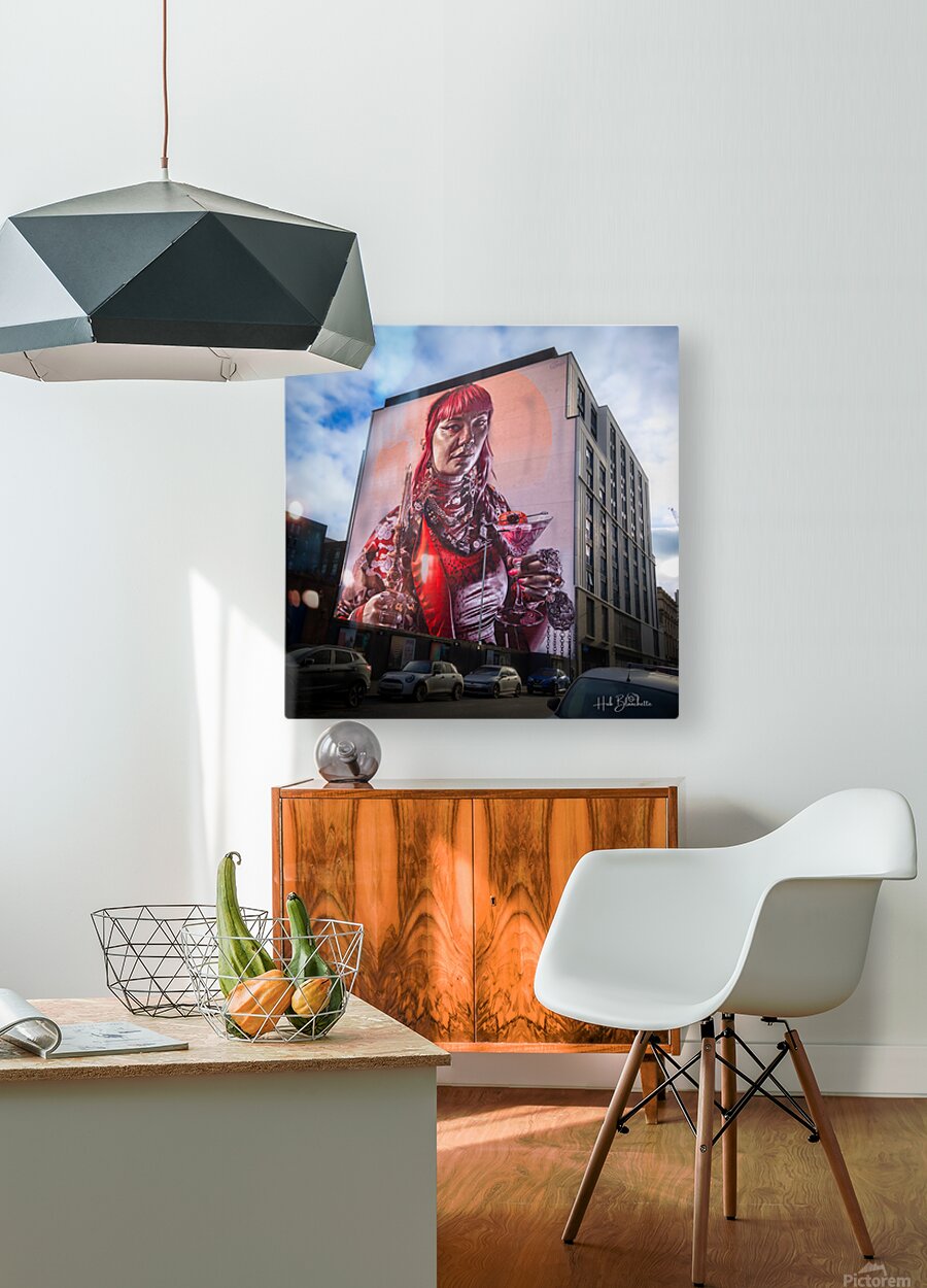 This massive, vibrant mural is one of Glasgow’s most striking pieces of street art, officially titled "The Lost Giant" (though also known as the "Giant of Glasgow"). The Artist and Subject * The Artist: It was created by the internationally renowned Australian street artist Smug (Sam Bates), who is famous for his incredible photo-realistic style. * The Model: The mural depicts a real Glaswegian, Mishay, a local woman who is heavily involved in the city’s creative and alternative scenes. * The Detail: Smug is celebrated for capturing fine details; notice the realistic textures of her jewelry, the translucency of the cocktail, and the smoke drifting from the candle she holds. Location and Scale * Location: You can find this towering piece on High Street, near the corner of George Street in the city center. * Size: It covers the entire gable end of a large modern building, making it one of the largest and most visible stops on the Glasgow City Centre Mural Trail. * Vibe: The piece reflects Glasgow's modern, edgy, and inclusive identity, blending traditional portraiture with a contemporary "cool" factor. The Mural Trail Context