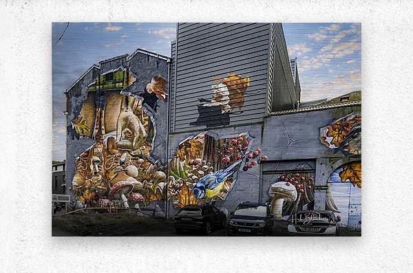 This striking piece of street art is part of a larger series titled "Fellow Glasgow Residents" by the world-renowned Australian street artist Smug (Sam Bates). Located on Ingram Street in Glasgow’s Merchant City, it is a major highlight of the Glasgow City Centre Mural Trail. Here are the key details about this specific section of the wall: 1. The Theme: "Fellow Glasgow Residents" The entire wall (which stretches quite a distance) depicts various animals and nature scenes found in Glasgow’s parks throughout the four seasons. The section in your image focuses on Autumn. * The Hiker: The large-scale hand and hiking boots belong to a giant hiker (often depicted wearing a kilt in the full view) who appears to be reaching through a "hole" in the wall to pluck a mushroom. * The Blue Tit: A photorealistic blue tit is shown in the center, eyeing a fallen berry. * Optical Illusion: Smug is famous for his trompe-l'œil (deceive the eye) style. He uses shadows and "cracks" in the concrete to make it look as if the wall has been smashed open, revealing a lush forest hidden behind the urban facade. 2. The Artist: Smug Sam Bates, known as Smug, is an Australian artist who has lived in Glasgow for many years. He is widely considered one of the best photorealistic spray-paint artists in the world. He creates these massive works entirely freehand using only aerosol cans—no projectors or stencils.