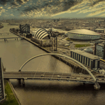 The River Clyde. It is the most famous waterway in Scotland and the heart of Glasgow's identity. Historical Significance * Shipbuilding Capital: The Clyde was once the shipbuilding center of the world. During the 19th and early 20th centuries, the phrase "Clydebuilt" became a global benchmark for quality and engineering. * Industrial Hub: Huge portions of the British Empire’s fleet were constructed along its banks. The Finnieston Crane (visible in your bridge photo) remains as a giant monument to this era, when it was used to lift heavy machinery onto departing ships. The Modern Waterfront The area shown in your images is known as Pacific Quay and the SEC (Scottish Event Campus). In recent decades, the riverbanks have transitioned from industrial shipyards to a hub for media, tourism, and entertainment: * Science and Media: The south bank (Pacific Quay) is home to the Glasgow Science Centre and the headquarters of BBC Scotland and STV. * Entertainment: The north bank features the OVO Hydro, the SEC Armadillo, and the SEC Centre, making it one of the busiest event destinations in Europe. Iconic Crossings The River Clyde is famous for its many bridges, each with a distinct character: * The "Squinty Bridge" (Clyde Arc): Shown in your photo, it is famous for its diagonal crossing and illuminated arch. * The Tradeston Bridge: Known locally as the "Squiggly Bridge" due to its S-shaped design. * The Bell’s Bridge: A pedestrian swing bridge that allows ships to pass through to the upper docks.