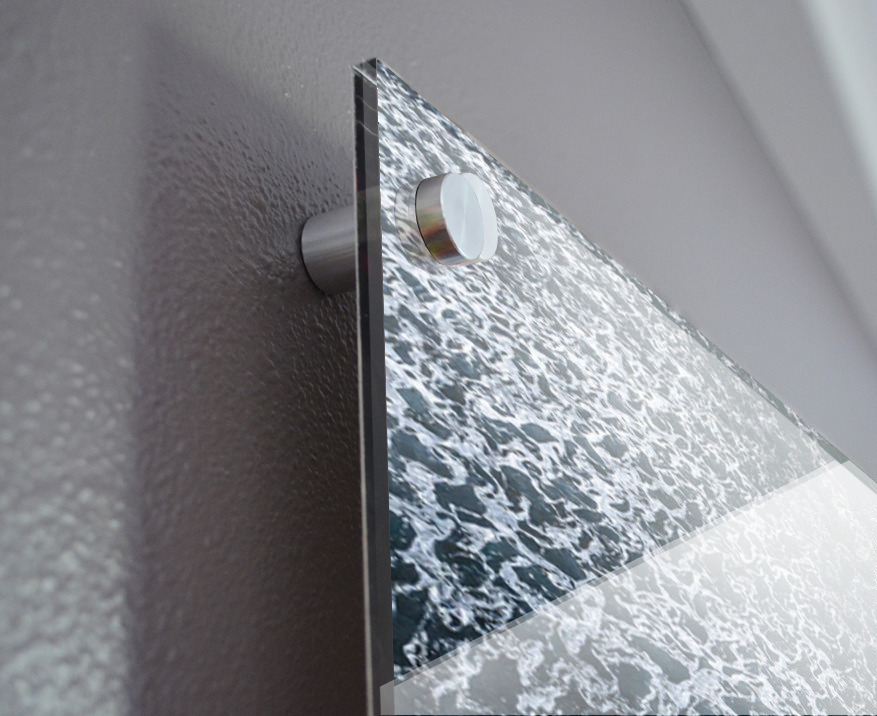 Impression sur acrylique avec entretoises ( cylindres métalliques )